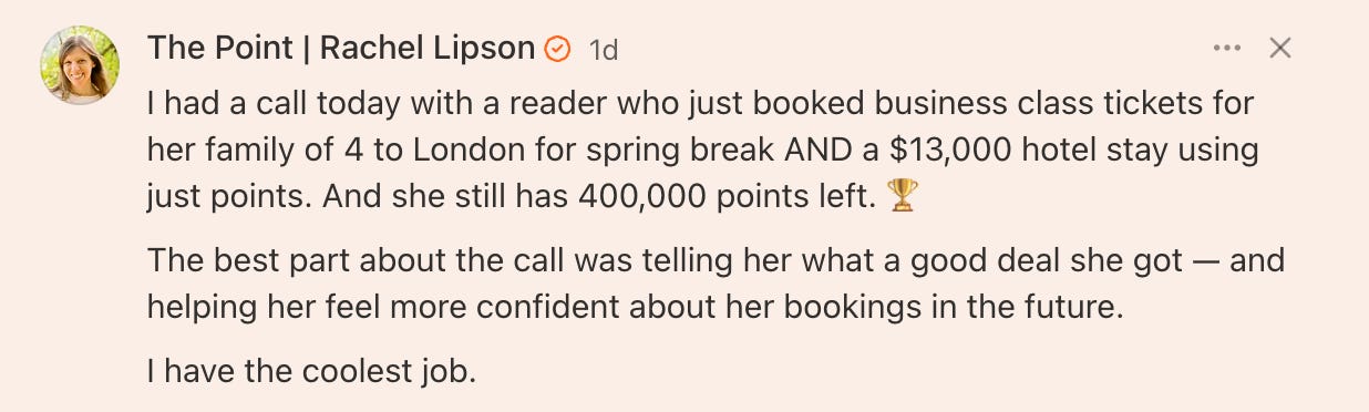 We launched a new series on the Point called Good Points to give paid subscribers (thank you!) digestible points and miles tips and answer readers’ questions.